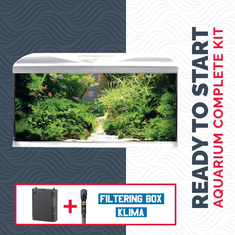 KIT COMPOSTO DA: ACQUARIO AMTRA SYSTEM TANK V2, FILTRO INTERNO CON POMPA E RISCALDATORE AUTOMATICO.