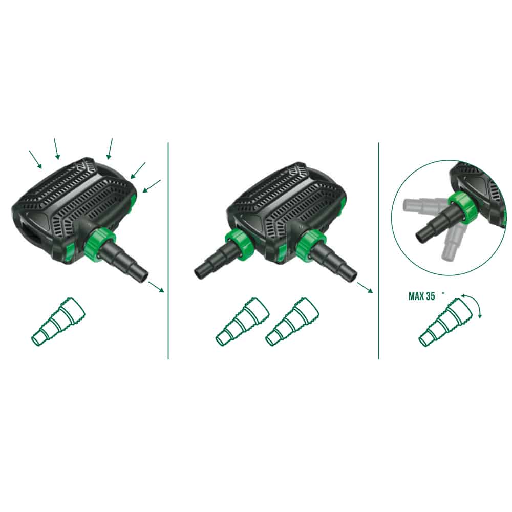 - Portata 3.600 l/h – prevalenza 2,8 metri – consumo 20 Watt – lunghezza cavo 10 metri