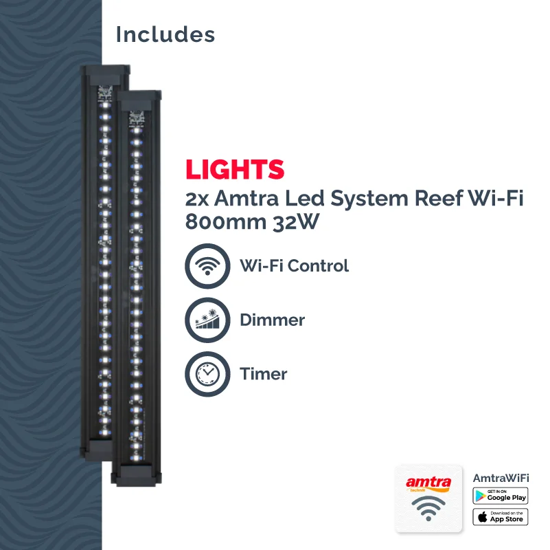 ACQUARIO AMTRA SYSTEM TANK V2 80 LED CON FILTRO BOX 150 RISCALDATORE E MOBILE