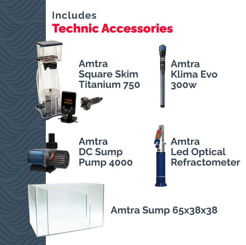 - Sump con schiumatoio, pompa di risalita e riscaldatore.