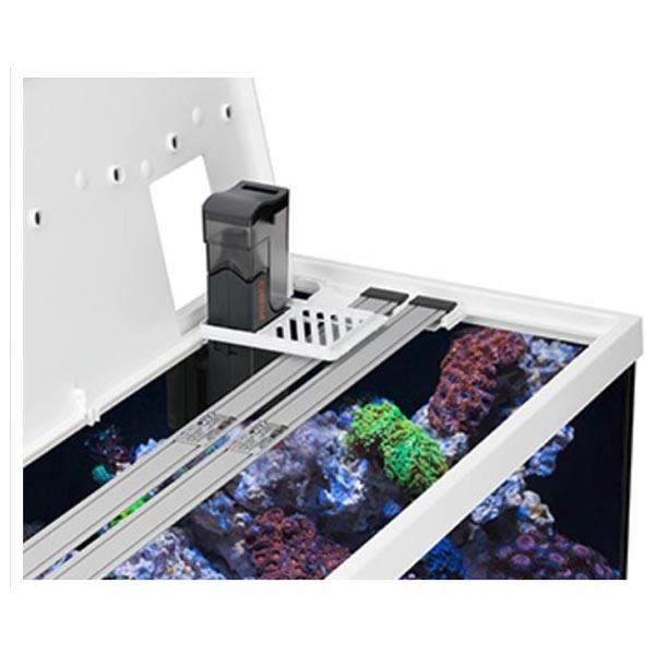 Grâce à sa galerie extra plate avec bande décorative en aluminium, l’AquaStar 63 LED Marin offre un design moderne unique. Cette galerie se retire facilement lors de l’entretien du bac ou au moment de nourrir vos poissons. Elle est dotée d’un éclairage LED 2 x 12W avec un spectre Hybride (mélange de bleu et blanc) afin de produire la lumière idéale pour les coraux et les habitants de l’aquarium.
