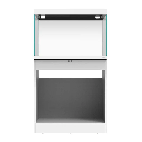 Un couvercle en verre noir intégré est là pour cacher le matériel, tout en gardant vos poissons en sécurité. Il peut s’ouvrir des deux côtés et est totalement amovible (pour installer une rampe d’éclairage surélevée par exemple).