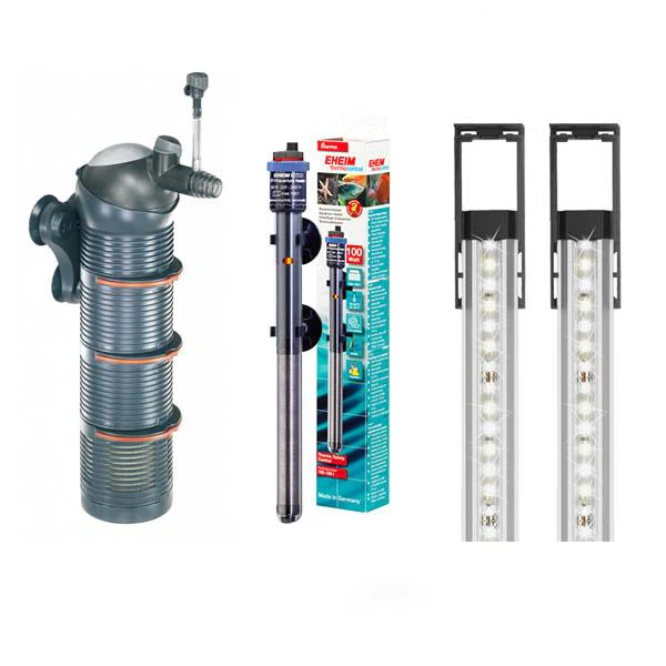 Ne vous préoccupez plus de tout le matériel nécessaire à la mise en route et la tenue d’un aquarium ! Toute la gamme Vivaline LED de EHEIM est équipée d’un éclairage LED puissant, d’un meuble de qualité assorti, d’un filtre interne avec masses filtrantes biologiques et d’un chauffage.
