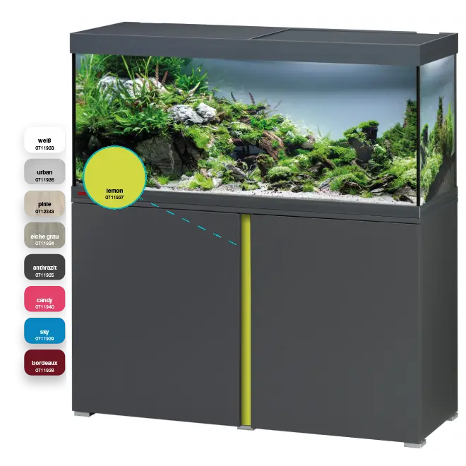 L’aquarium Vivaline LED 240 de EHEIM existe en quatre coloris différents pour s’intégrer au mieux au style de votre aménagement :