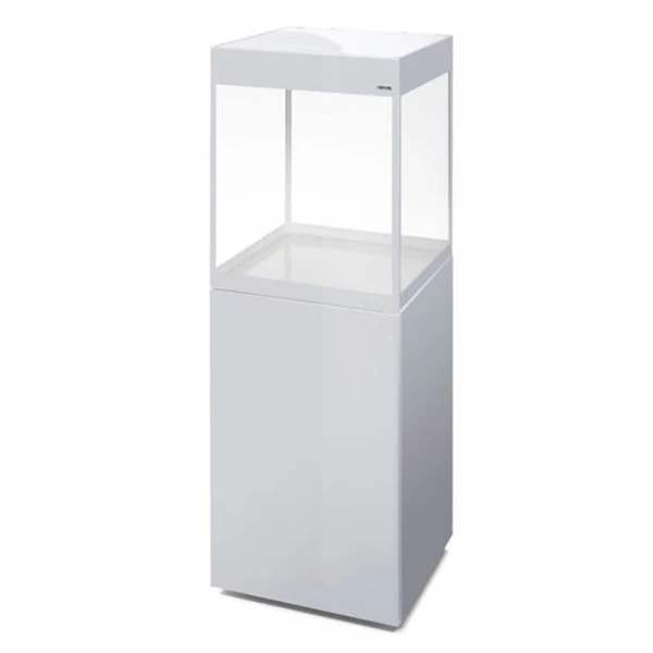 L’aquarium est disponible avec ou sans son meuble assorti en option. D’une hauteur de 93 cm, le meuble Glossy Cube Blanc Laqué est fabriqué à partir de matériaux de qualité avec des portes en acrylique.