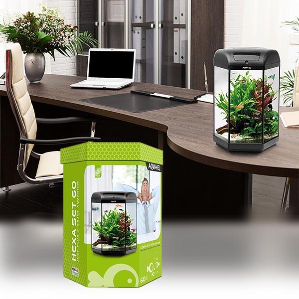L’aquarium Hexa Set AQUAEL est un aquarium hexagonal de 60L totalement équipé. Grâce à sa forme hexagonale très design et esthétique, il saura embellir votre pièce du haut de son meuble assorti ou tout simplement posé sur un bureau.