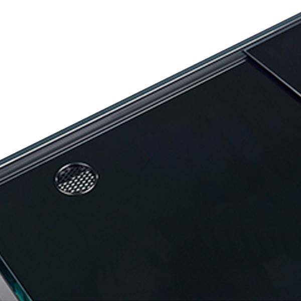 La cuve est fermée par des couvercles coulissants en verre noir pour une utilisation pratique.