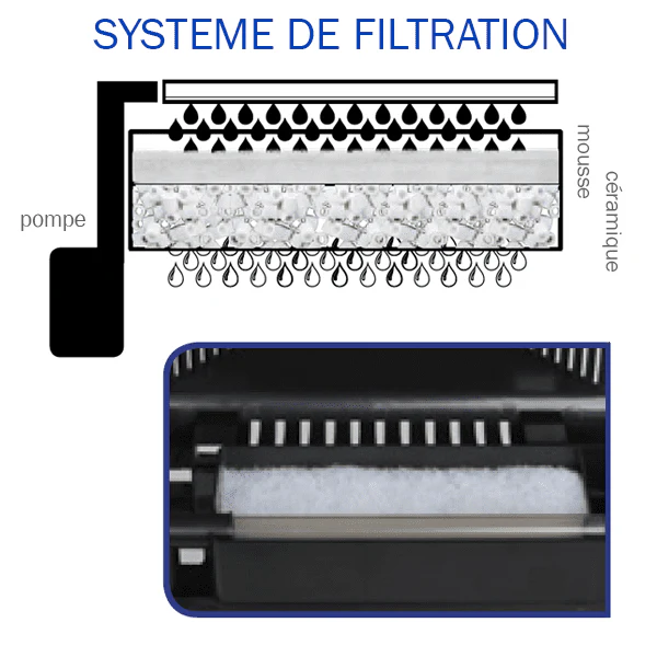 Le filtre est équipé de mousse de filtration et de nouilles en céramique, pour assurer une parfaite filtration.