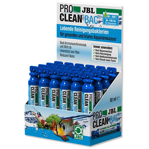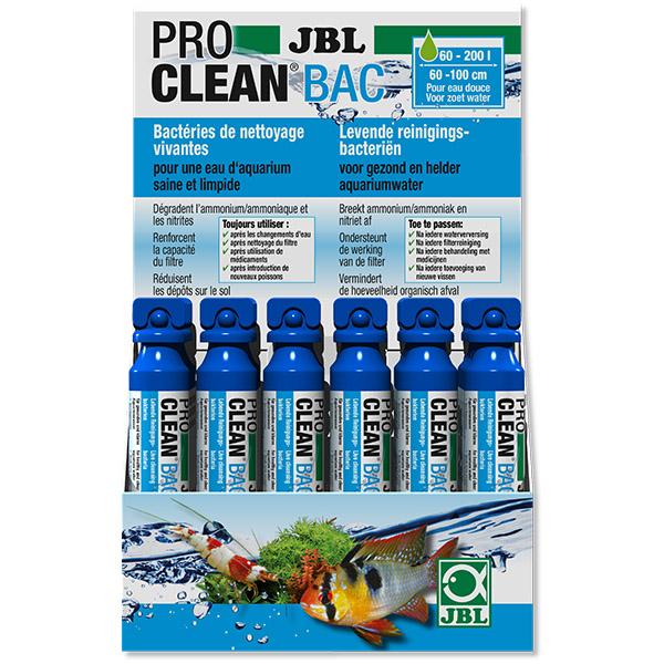 ProClean Bac de JBL est un produit composé de bactéries nettoyantes qui dégradent l’ammonium/ammoniaque et les nitrites. Il renforce également l’action du filtre et réduit l’humus (saleté au sol) en laissant une eau propre et limpide.