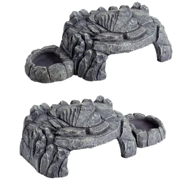 Il se distingue par son design magnétique détachable, qui permet de séparer facilement les plats de l’abri pour un nettoyage simple et hygiénique. Sa forme imite l’apparence d’une roche naturelle, garantissant une intégration harmonieuse dans tout décor de terrarium.