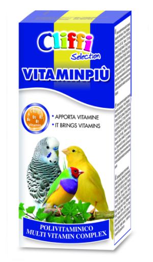 Complesso multivitaminico completo. Mangime complementare per uccelli da compagnia. POLIVITAMINA Negli uccelli si verificano frequentemente carenze vitaminiche che possono avere conseguenze spiacevoli. VITAMINPIÙ, un complesso multivitaminico completo, limita la comparsa di queste carenze, se usato regolarmente 2 volte a settimana. VALIDITÀ: 30 mesi Modalità d’uso: 25 gocce ogni 50 g di acqua o 25 g di alimento, per 2 giorni alla settimana durante tutto l’anno. Conservare in luogo fresco e asciutto. Il numero di identificazione, il lotto e la data di scadenza sono indicati nella parte superiore della scatola.