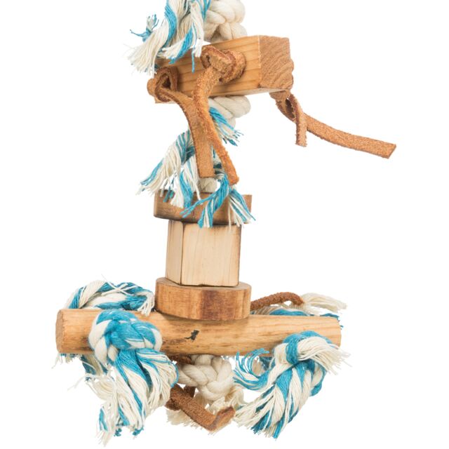 Informazioni sul prodotto in legno fiammato con corda e frange in cuoio raccomandato dal Parco ornitologico di Walsrode (Weltvogelpark Walsrode) MISURA 35CM