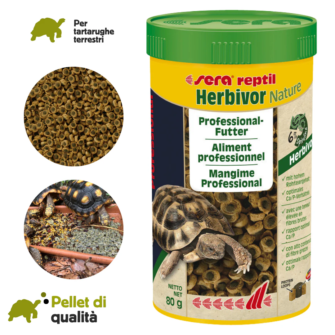 Herbivor è un mangime complementare formulato per rispondere alle specifiche esigenze nutrizionali di tartarughe terrestri e rettili erbivori. Privo di coloranti e conservanti, è composto da granuli bicolore ottenuti mediante un innovativo processo di coestrusione, che consente di unire funzionalità nutrizionale e appetibilità in un unico alimento completo, sano e bilanciato.