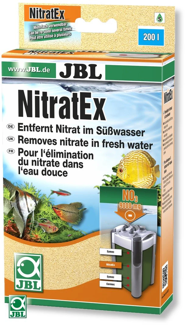 Massa filtrante per l’eliminazione veloce del nitrato. — Massa filtrante per l’eliminazione veloce del nitrato. Solamente per acqua dolce. Impedisce o elimina un’indesiderata crescita di alghe. 250 ml (170 g) legano 9000 mg di nitrato. Sacchetto filtrante allegato. Riutilizzabile più volte mediante semplice rigenerazione con sale da cucina. Sufficiente per 200 litri.