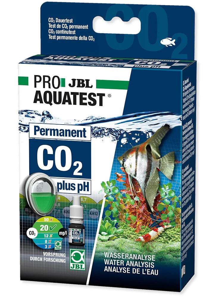 Test CO2 permanente più pH Test permanente della CO2. Controllo della fertilizzazione con CO2. Con un elegante ampolla per il test, 20 ml di indicatore speciale sufficiente per 9-12 mesi di misurazione permanente. Lettura diretta del contenuto di CO2 in mg/l.