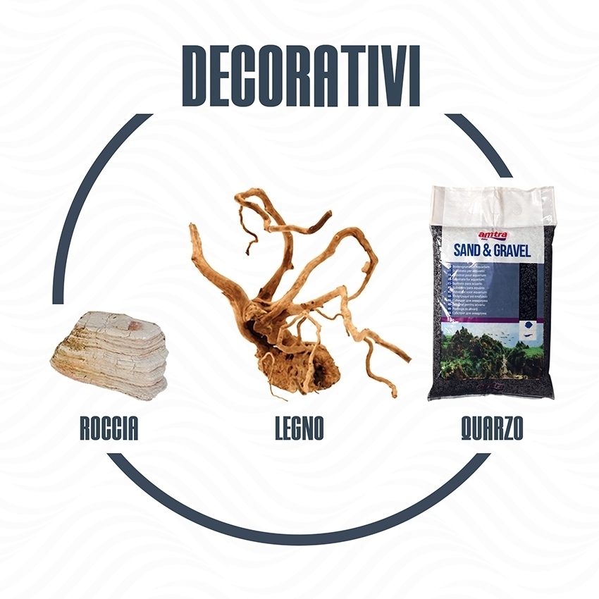 - Fondale: Quarzo ceramizzato nero 2-3 mm/ 2 Kg