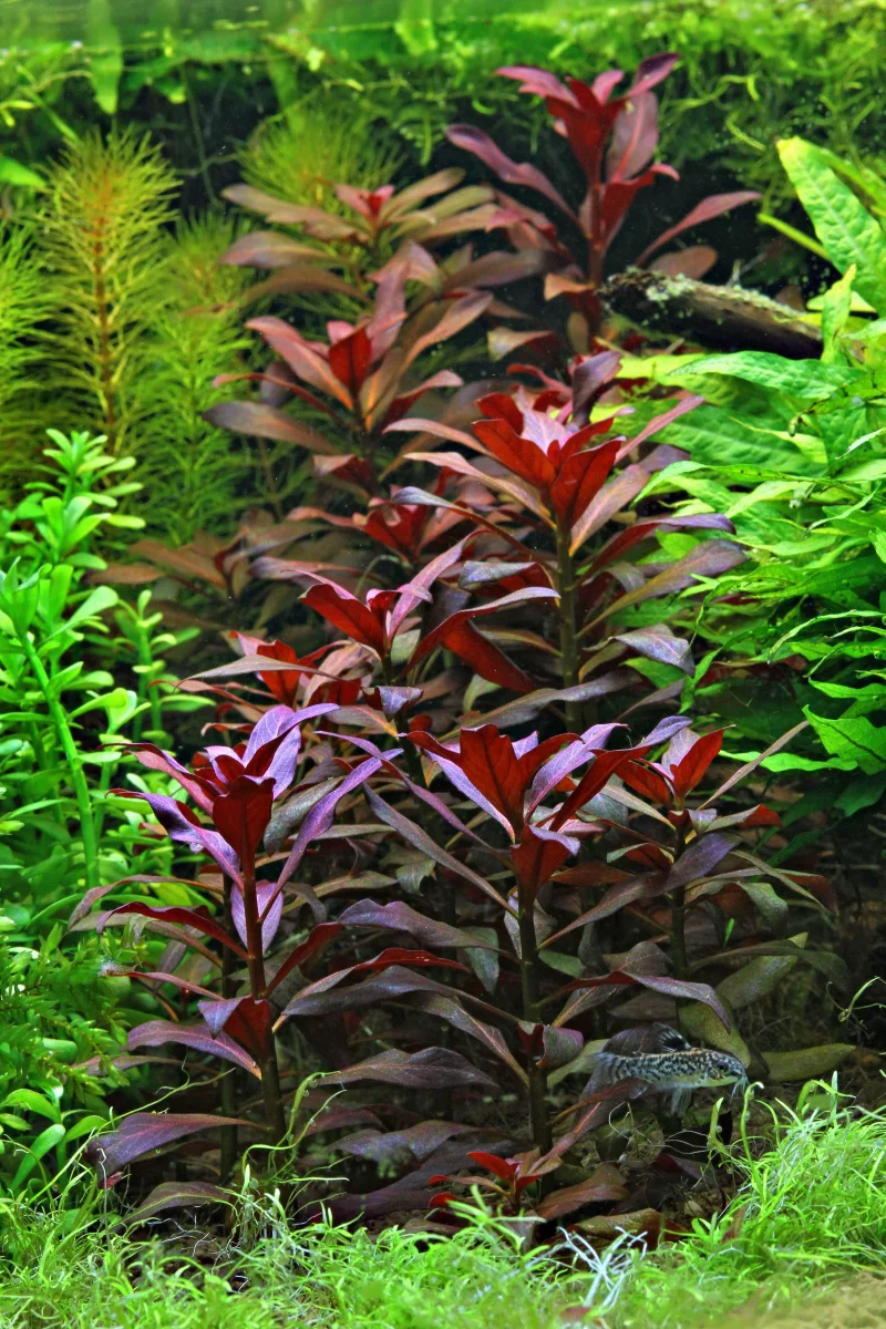 Intensità di Luce: Questa pianta richiede un’illuminazione intensa per mantenere la sua colorazione rosso porpora. Sotto luce forte, le foglie sviluppano tonalità più vivaci e brillanti. In condizioni di luce moderata o bassa, la pianta tende a perdere il suo colore intenso, diventando verde o marrone e crescendo più lentamente. L’aggiunta di CO2 e fertilizzanti è essenziale per far emergere al meglio le sue caratteristiche cromatiche.