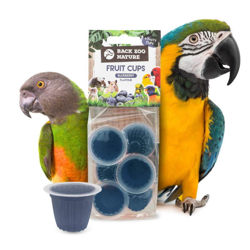 Blueberry Fruit Cups contiene 6 tazze al gusto di mirtillo. Vizia il tuo pappagallo con coppette di mirtilli!