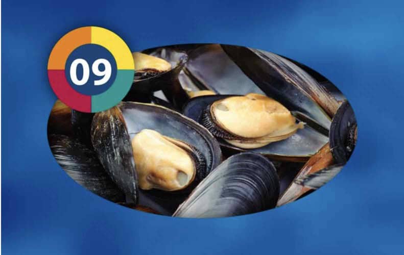 Mussel meat, alimento adatto per pesci di acqua dolce e pesci marini. prodotto molto appetibile, venduto come cozze a pezzetti nel blister da 100gr