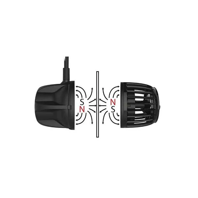 La Pompe VorTech MP Quiet Drive est maintenue dans l’aquarium à l’aide d’un aimant intégré. Une première partie de la pompe se trouve à l’intérieur de l’aquarium et une seconde partie est aimantée de l’autre côté. Ainsi, le fil électrique est totalement hors de l’eau, ce qui écarte tout risque électrique.