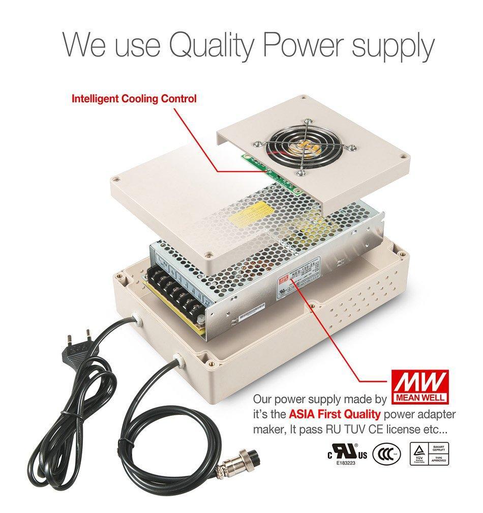 Le corps de la rampe est tout aluminium pour une diffusion optimale de la chaleur รฉmises par les LEDs. Le contrรดle de refroidissement intelligent รฉvite la prรฉsence de ventilateur.