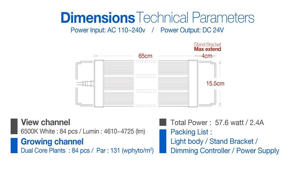 Le corps de la rampe est tout aluminium pour une diffusion optimale de la chaleur รฉmises par les LEDs. Le contrรดle de refroidissement intelligent รฉvite la prรฉsence de ventilateur.