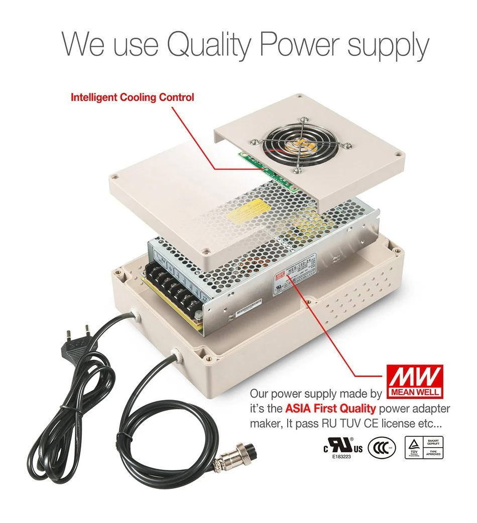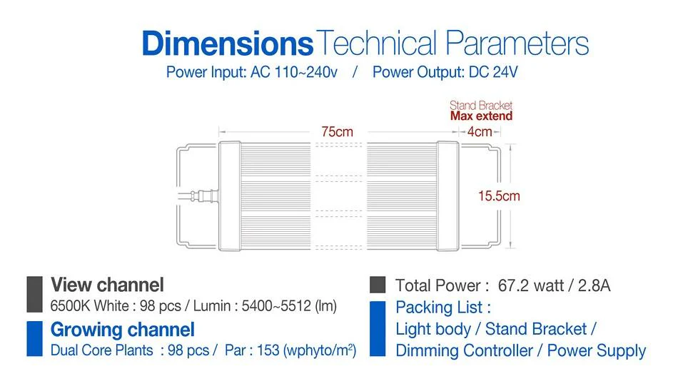 Le corps de la rampe est tout aluminium pour une diffusion optimale de la chaleur รฉmises par les LEDs. Le contrรดle de refroidissement intelligent รฉvite la prรฉsence de ventilateur.