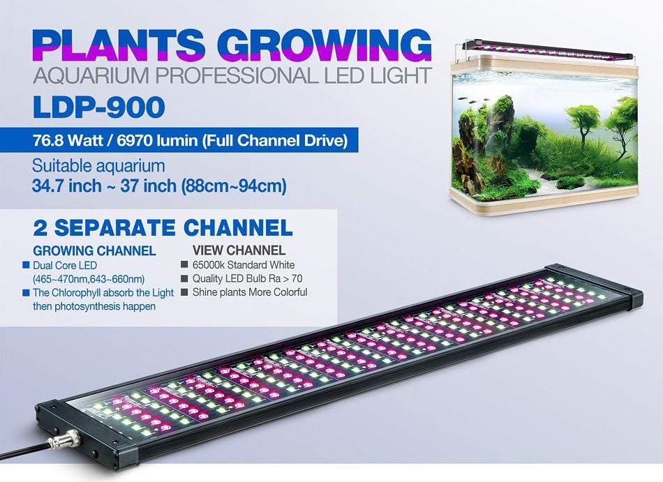Rampe LED d’eau douce ร deux canaux spรฉcialement conรงue pour favoriser la croissance des plantes aquatiques. Elรฉment indispensable pour l’aquascaping et les bacs plantรฉs. La rampe LED LDP-900 permet aux plantes aquatiques d’รชtre au plus proche de leur habitacle naturel et en bonne santรฉ. Elle contient un canal de LED avec double puce (rouge et bleu) qui favorise la photosynthรจse, et d’un canal de LED blanc qui rend les plantes plus รฉclatantes et plus colorรฉes.