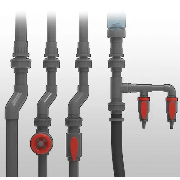 Kit prêt à l’emploi, installation facile, sans aucun collage. Drain principal : 2x DN25 (32 mm) Débordement d’urgence : DN32 (40 mm) Retour de la pompe : DN25 (32 mm) Buse de sortie : 2 x DN20 (25 mm) Présence d’un robinet vanne de précision, qui permet des micro-ajustements pour que votre système fonctionne de manière ultra-silencieuse. |