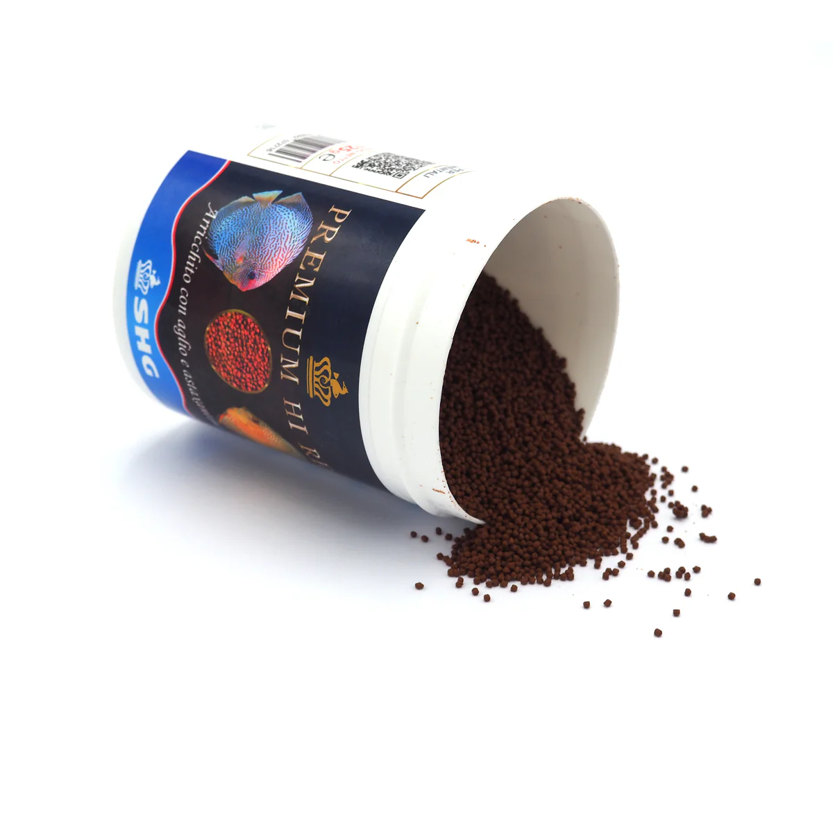 SHG Hi Red è un alimento completo di altissima qualità, sviluppato specificamente per pesci onnivori con preferenza carnivora, tra cui Discus, ciclidi esigenti, pesci marini ornamentali e tutti i pesci che richiedono un mangime ricco, nutriente e altamente appetibile 🐠❤️.