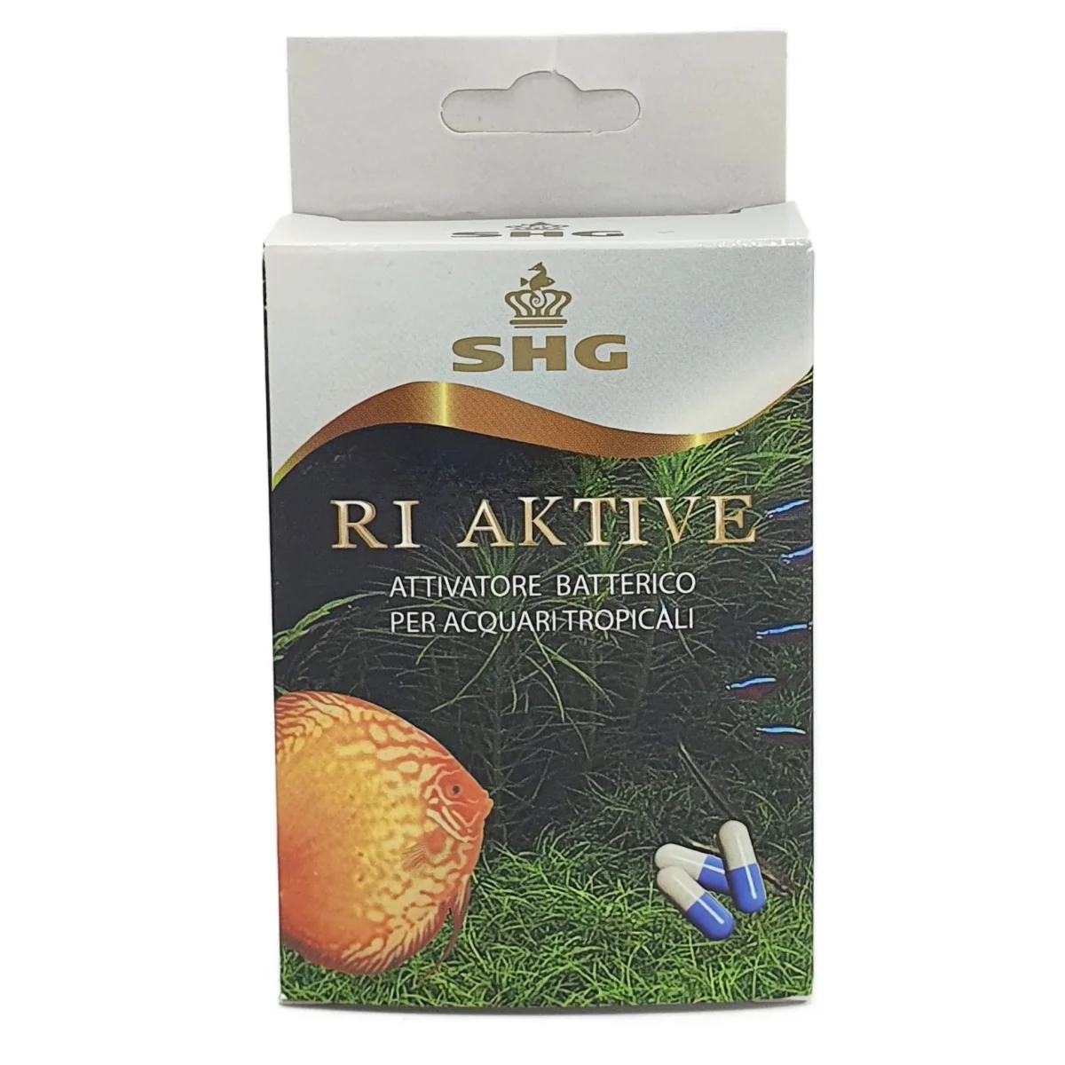 Rigenera e potenzia l’anima biologica del tuo acquario con SHG Ri Aktive. Queste innovative capsule solubili rappresentano un trattamento d’urto e di mantenimento completo, contenente una miscela selezionata di ceppi batterici vivi, proenzimi, sali minerali ed estratti vegetali.