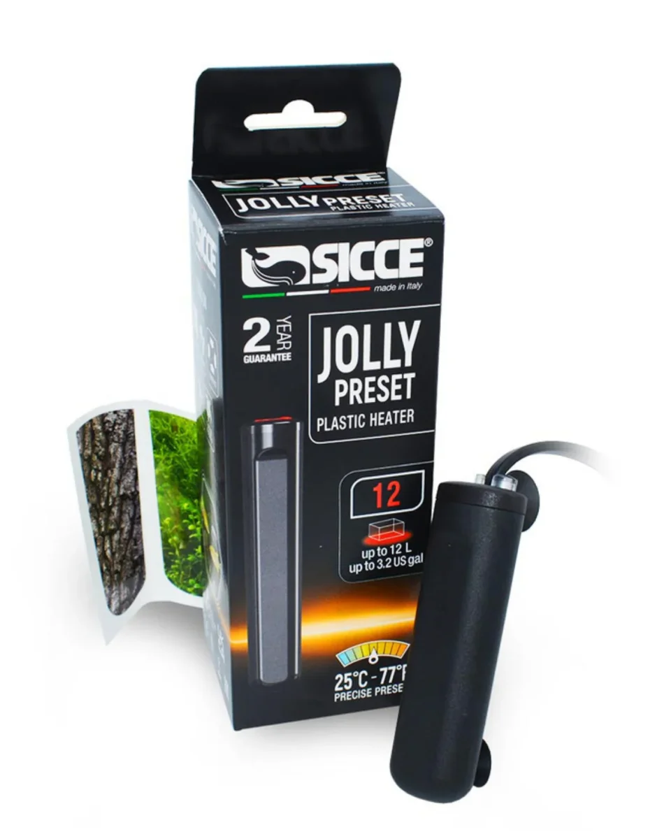 Il Sicce Jolly Preset 12 W è un riscaldatore reimpostato a 25°C, progettato per garantire la stabilità termica in acquari di piccole dimensioni. Perfetto per pesci, tartarughe, piccoli anfibi e gamberetti, assicura un habitat confortevole e sano, specialmente durante i mesi più freddi.