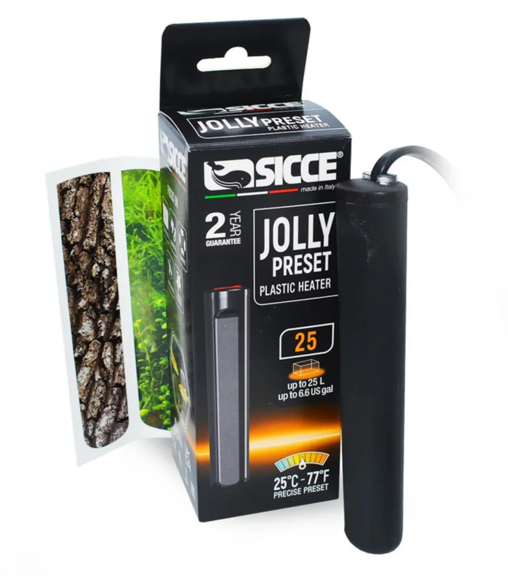Assicura il clima perfetto ai tuoi piccoli abitanti acquatici con il Sicce Jolly Preset 25W, il riscaldatore ultra-compatto progettato specificamente per Nano Acquari fino a 25 litri.