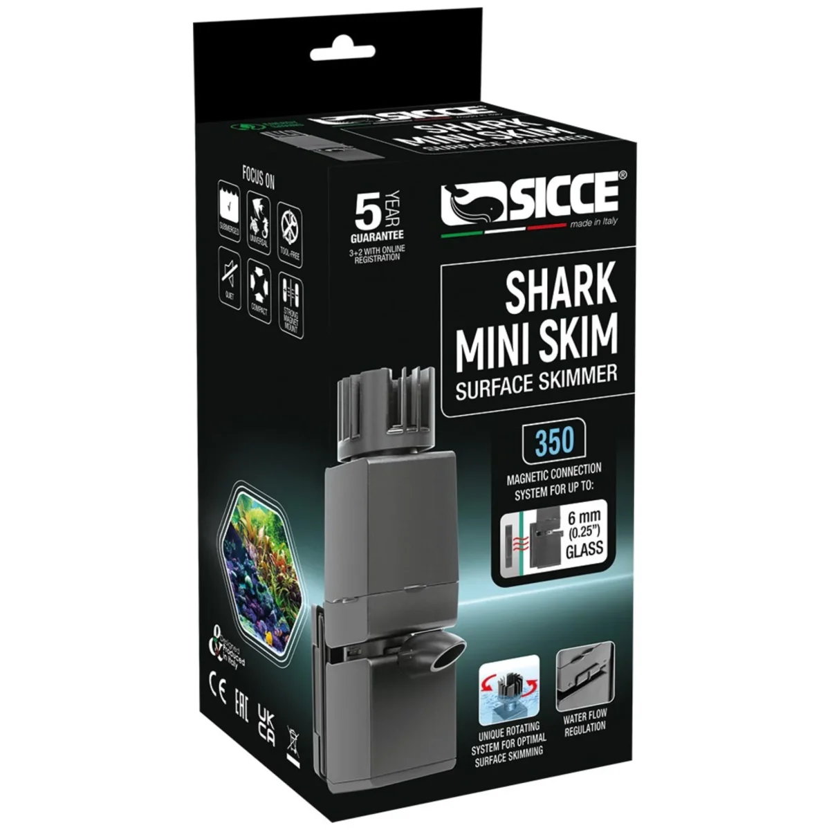 Sicce Shark Mini Skim 350 è uno skimmer di superficie compatto ed efficiente, progettato per mantenere l’acqua dell’acquario pulita e ossigenata.