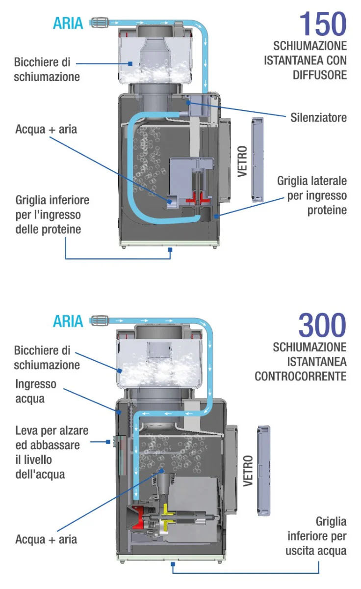 • 🔄 Schiumazione controcorrente con ingresso acqua regolabile