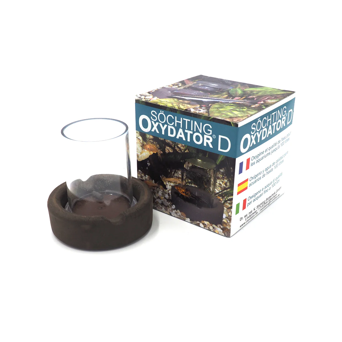 Söchting Oxydator D è un innovativo sistema di ossigenazione per acquari fino a 100 litri, che utilizza il perossido di idrogeno (H₂O₂) per produrre ossigeno puro in modo silenzioso e naturale, senza bisogno di elettricità, tubi o pompe d’aria.