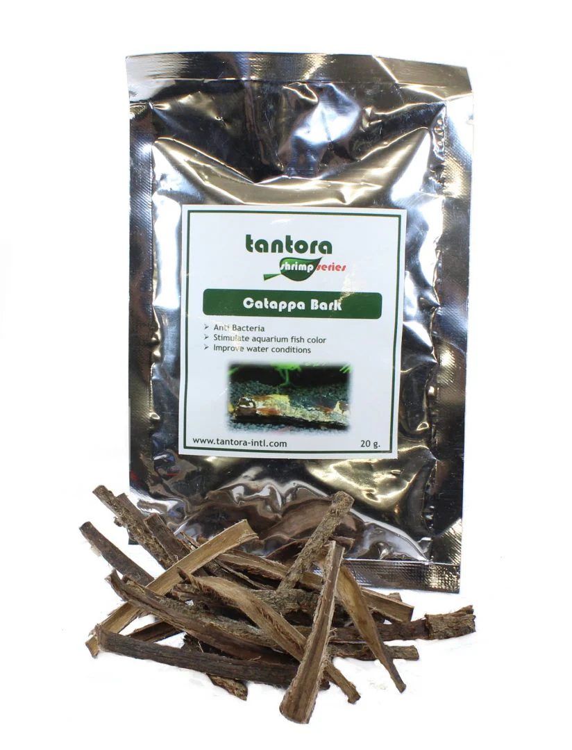 La corteccia di Catappa differisce dalle foglie di Catappa poiché la corteccia affonderà immediatamente sul fondo. Rilascerà gradualmente i nutrienti per gamberetti e pesci. Inoltre, serve anche come habitat per i gamberetti. Le cortecce si ammorbidiranno se lasciate in ammollo in acqua per oltre 5 giorni, che possono essere fonti di cibo per i gamberetti.