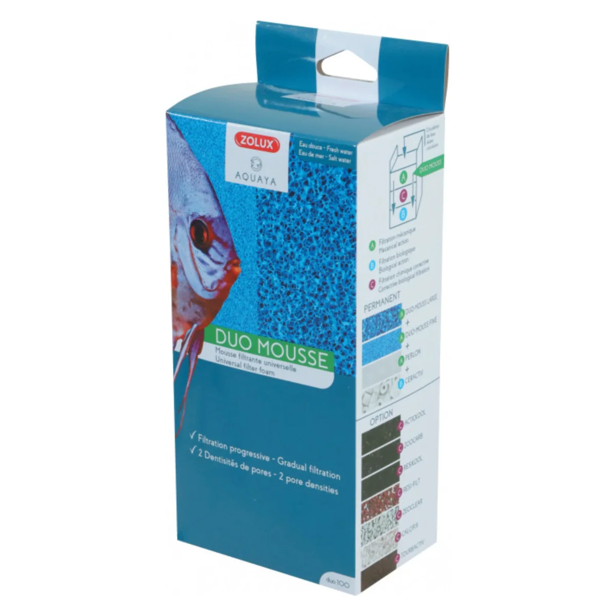 Le Zolux Duo Mouss 100 sono spugne filtranti compatibili con la maggior parte dei filtri per acquario presenti sul mercato. Realizzate in materiale di alta qualità, queste spugne offrono una filtrazione meccanica e biologica ottimale, trattenendo lo sporco e favorendo la colonizzazione dei batteri benefici.